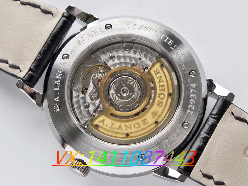 表帶選用意大利小牛皮材質,質地柔軟,觸感細膩,透氣性良好,佩戴舒適。搭配朗格經典式針扣,設計簡潔大方,與腕表整體風格相呼應。針扣開合順暢,佩戴牢固,為腕表增添了一份優雅與尊貴。?