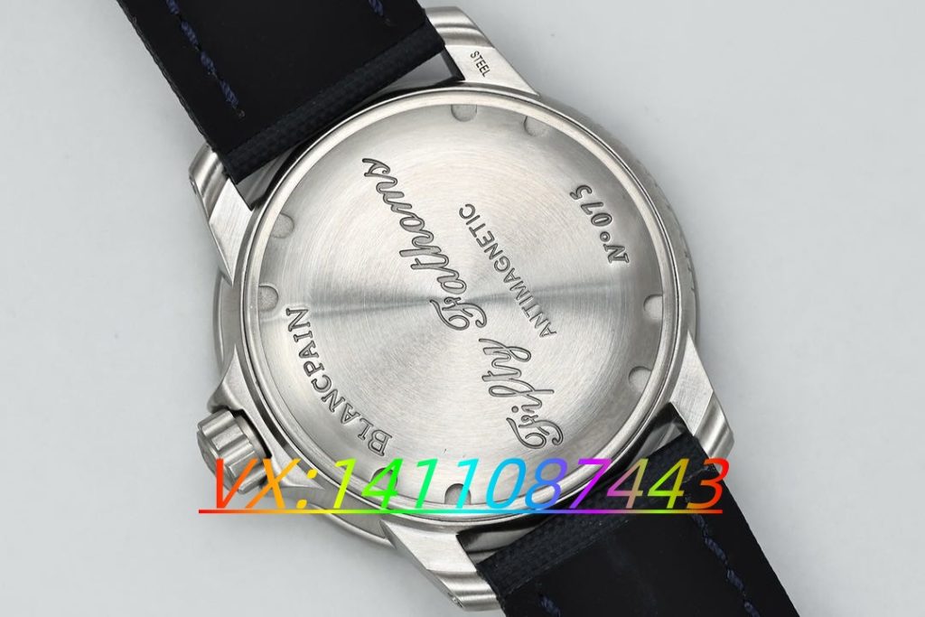 表帶部分,ZF 寶珀 50 噚終極版采用帆布搭配橡膠內襯的組合,堪稱戶外冒險與日常通勤的得力伙伴。帆布材質堅韌耐磨,即使歷經長途跋涉、風吹日曬,也不易損壞,展現出頑強的生命力。而橡膠內襯則柔軟貼合,完美地貼合手腕曲線,不僅能有效緩沖震動,為手腕提供舒適的佩戴體驗,還具備出色的防水、防滑性能。在潮濕的環境中,橡膠內襯能夠緊緊貼合手腕,防止腕表滑落;在水中活動時,其防水性能也能確保腕表不受侵害。這種實用與美學的絕佳融合,讓這款腕表無論是搭配休閑裝漫步街頭,還是身著專業潛水裝備探索海底世界,都毫無違和感。?