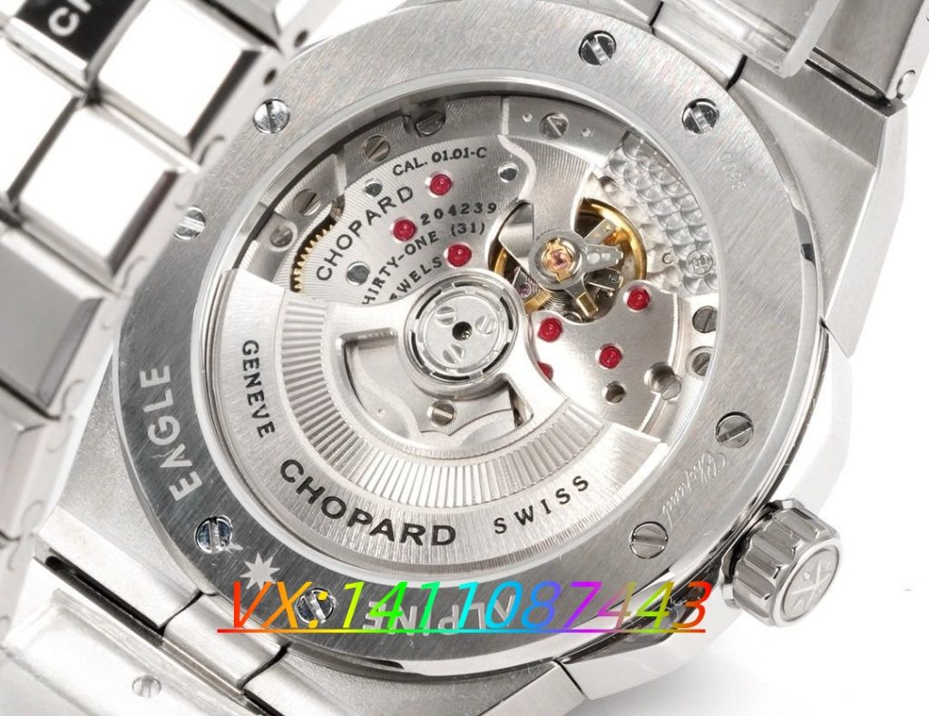 在機(jī)芯方面,這款腕表搭載 9015 改 Chopard 01.01-c 機(jī)芯,展現(xiàn)出了卓越的性能。9015 機(jī)芯作為一款成熟且穩(wěn)定的基礎(chǔ)機(jī)芯,經(jīng)過 GH 廠的精心改造和調(diào)校,不僅在走時(shí)精準(zhǔn)度上表現(xiàn)出色,能夠滿足日常使用需求,而且在穩(wěn)定性和耐用性方面也有可靠保障。其復(fù)刻的 Chopard 01.01-c 機(jī)芯細(xì)節(jié),從夾板的紋路到零件的刻字,都高度還原了原版機(jī)芯的風(fēng)貌,展現(xiàn)出 GH 廠在機(jī)芯復(fù)刻工藝上的深厚功力。無論是從實(shí)用性還是收藏價(jià)值的角度來看,這樣的機(jī)芯配置都為這款腕表增色不少。?