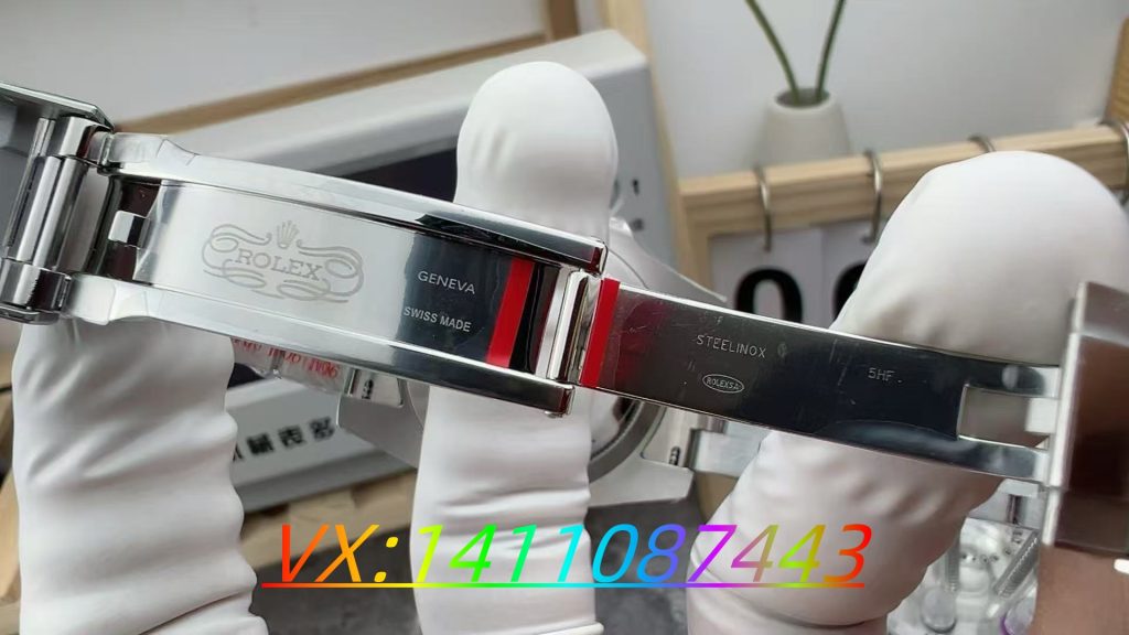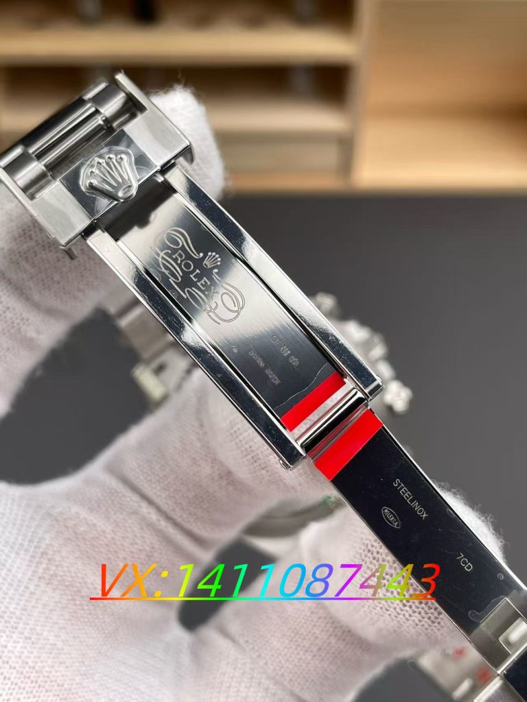 表帶部分同樣是 904L 精鋼材質,表節之間的連接緊密,活動起來靈活自然,不會出現卡頓或松垮的現象。表扣的開合順暢,內部的彈簧裝置彈性適中,使用體驗較好。不過,與正品相比,表帶的拉絲效果在深度和立體感上稍顯遜色,正品的拉絲更具層次感,仿佛每一道拉絲痕跡都蘊含著精湛工藝的韻味。