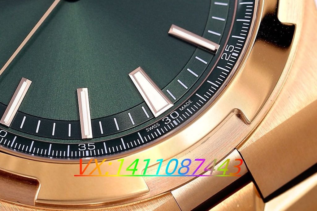 指針設(shè)計(jì)采用經(jīng)典的陰陽指,一半磨砂處理,一半拋光,過渡自然,質(zhì)感十足。指針中軸為實(shí)心構(gòu)造,進(jìn)一步提升了腕表的整體品質(zhì)感。江詩丹頓的品牌標(biāo)志復(fù)刻效果也十分出色,標(biāo)志的大小、比例恰到好處,下方的字體印刷清晰、精致,與正品相比幾可亂真。